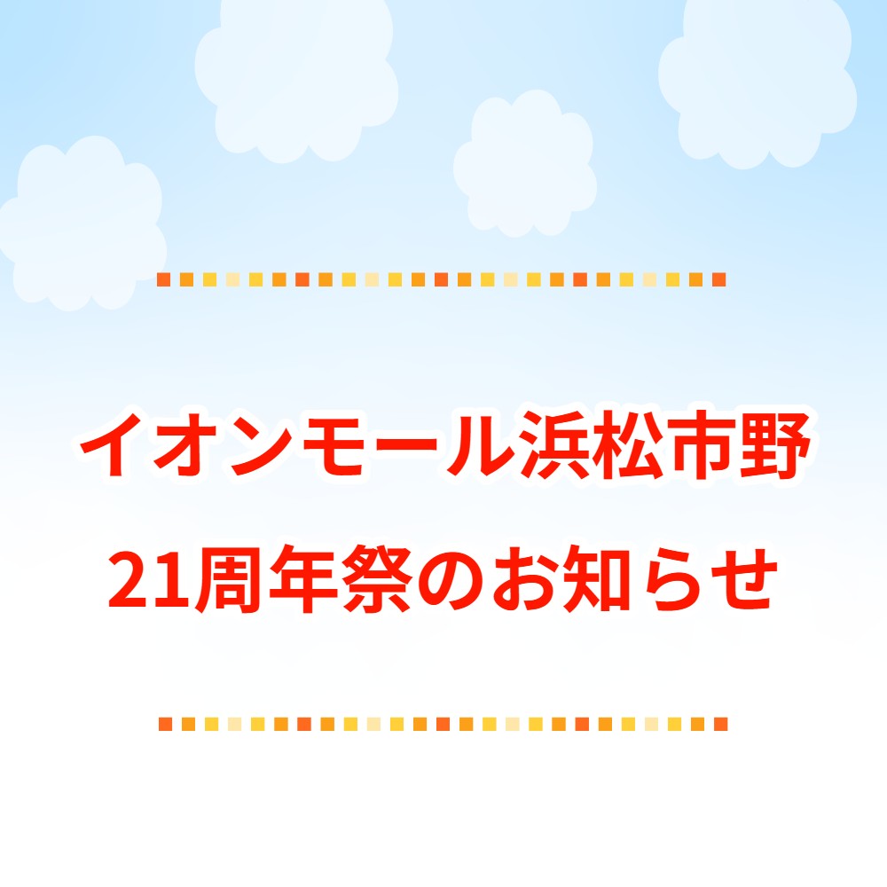 イオンモール浜松市野は今年で21周年!21周年を記念して、周年祭を実施いたします✨