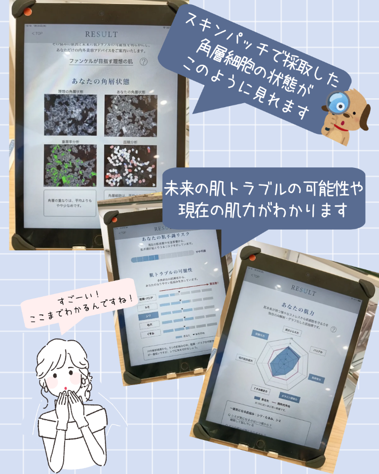 Q1.測定結果から「抗酸化力」や「肌修復力」また「メラニン調整力」が低いため、