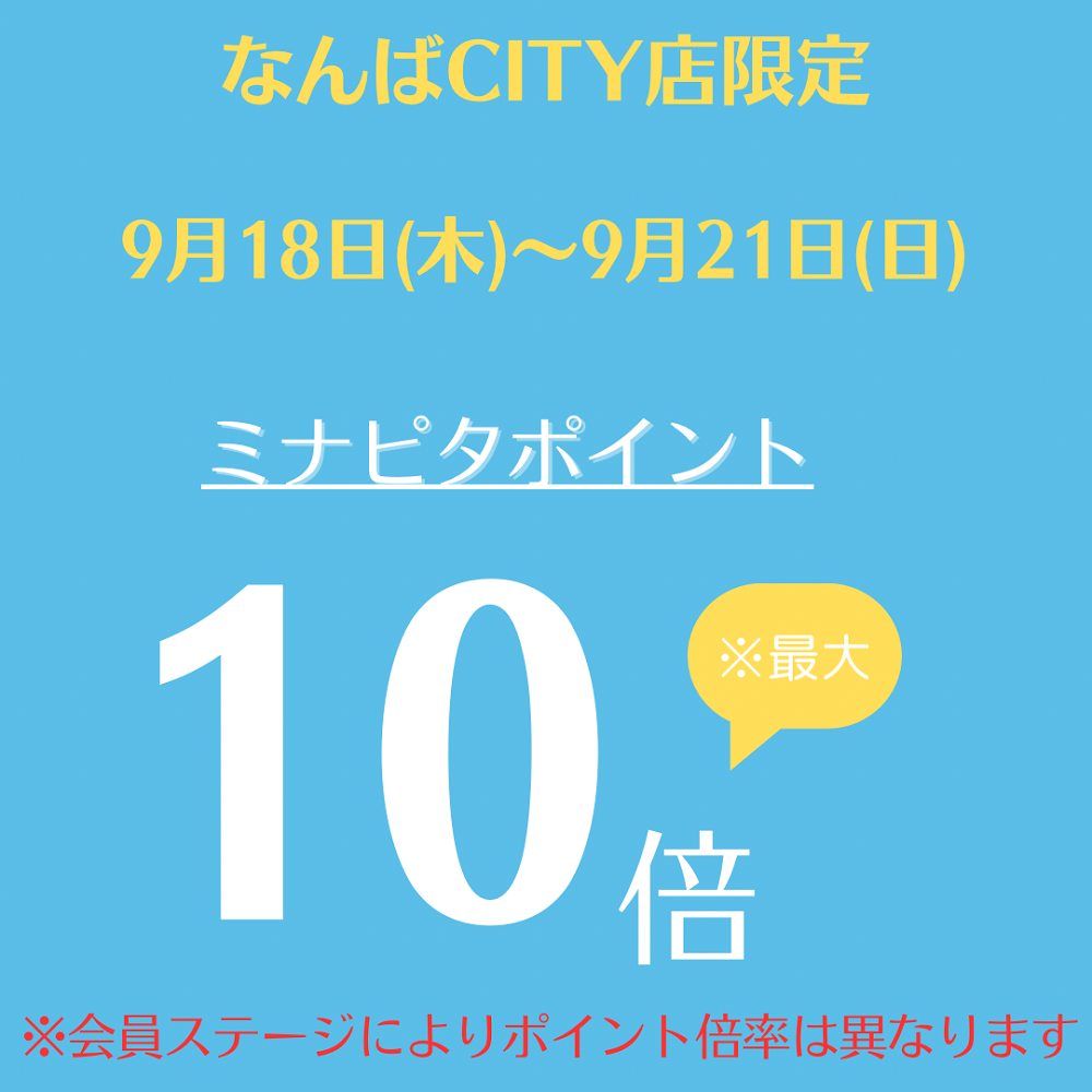 9月18日(木)~21日(日)の4日間限定でミナピタポイントアップデーを開催いたします!✨✨✨