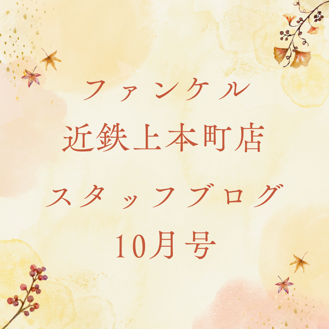 スタッフブログをご覧の皆様こんにちは😙ファンケル近鉄上本町店です✨毎月お届けしているブログでも今年は暑さ🥵について毎月触れていますが・・・9月末現在まだ暑い日もありますね😰夕方日が沈むのは早くなり若干秋の気配を感じたかと思えばまた暑さがぶり返したりとなかなかしぶとい暑さに毎日ご来店くださるお客様とも『まだ暑いねぇ・・・』とお話しすることが多々あります💦このまま秋の気配を感じられる気候になっていってほしいですね🍁