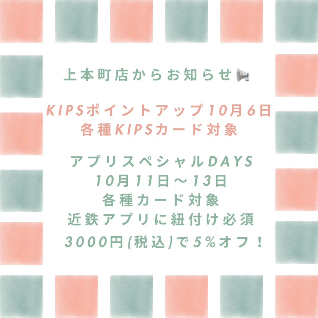 10月のお得な日程は下記の通りとなりますのでお買い物の計画にお役立てください💛また皆様お待ちかねファンケルのカレンダープレゼント🎁は10月15日㊌スタートです✿今年も華やかなフラワーデザインとなっており既に待ち遠しいとのお声を沢山いただいております!皆様のご来店をスタッフ一同心よりお待ちしております❣❣☎06-6774-5229