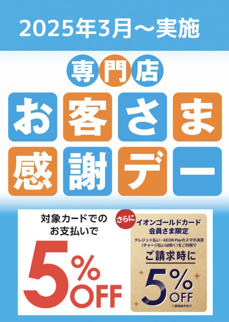 イオンマークのついたカードでのお支払いで5%オフ!