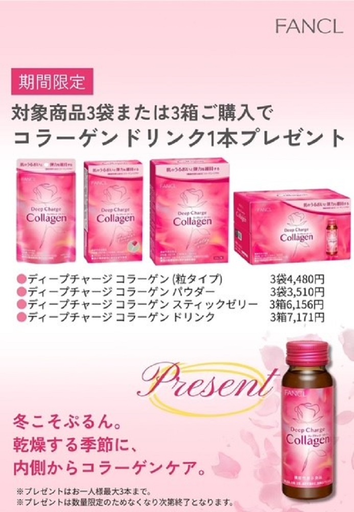 ディープチャージコラーゲンドリンクを1本プレゼントいたします!